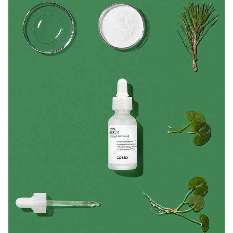 سرم ترمیم کننده سیکا کوزارکس COSRX مدل Pure Fit Cica Serum حاوی عصاره سنتلا می باشد که باعث تسکین پوست می شود و خاصیت درمان التهاب، خشکی، قرمزی و التیام پوست دارد.
